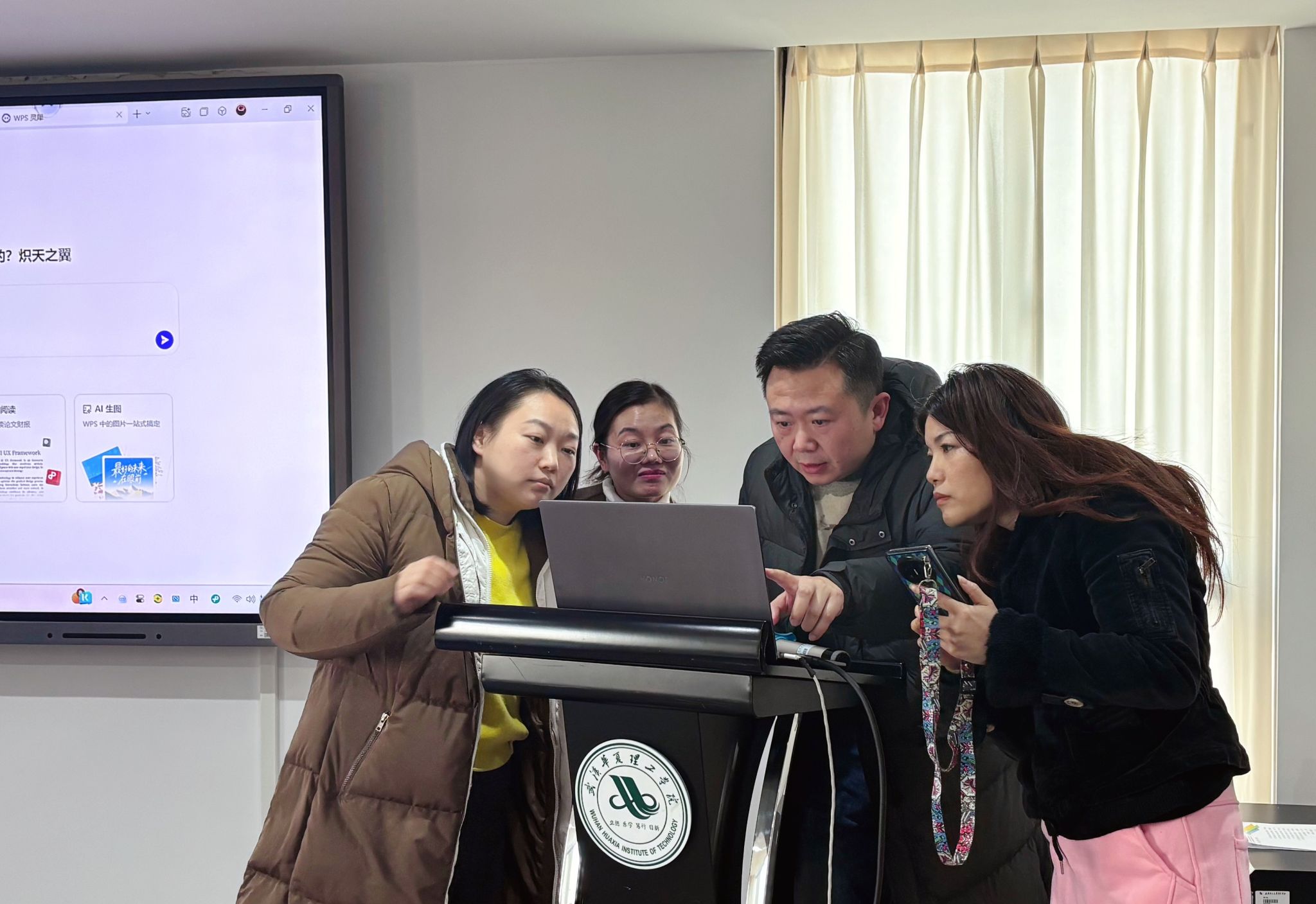 培训现场研讨氛围浓厚,参训教师主动参与互动交流,围绕AI工具应用中的技术难点、课件优化的教学适配性等问题展开深入探讨。严黎副教授针对教师们提出的个性化问题进行逐一答疑指导,有效解决了教师在课件智能化制作中的实际困惑,切实提升了培训的针对性与实效性。