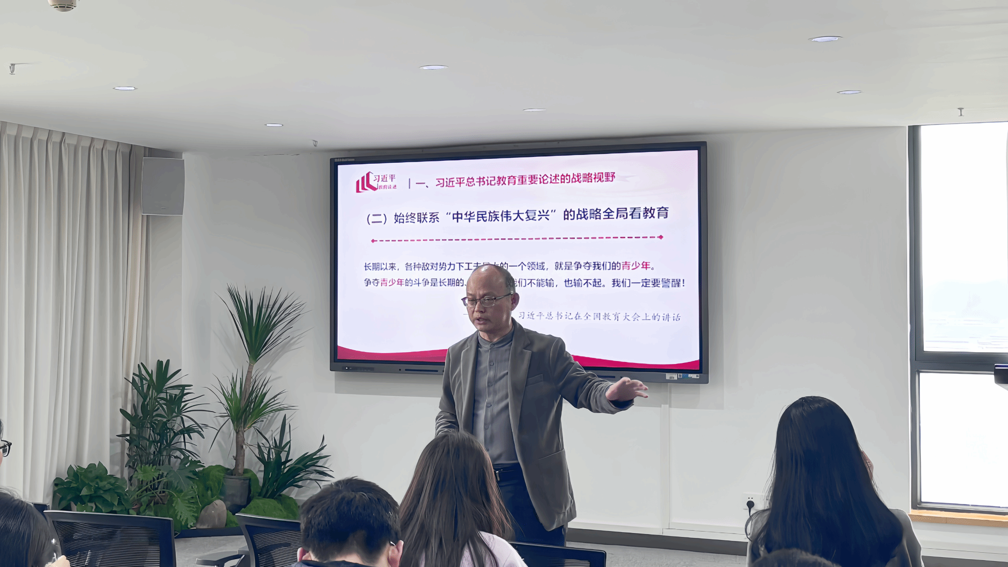 为全面把握新时代教育发展方向,扎实落实立德树人根本任务,2026年4月16日下午,教师发展中心、马克思主义学院联合举办习近平总书记关于教育的重要论述专题学习讲座,邀请马克思主义学院陈波教授主讲,学校数十名青年教师齐聚一堂、潜心学习。