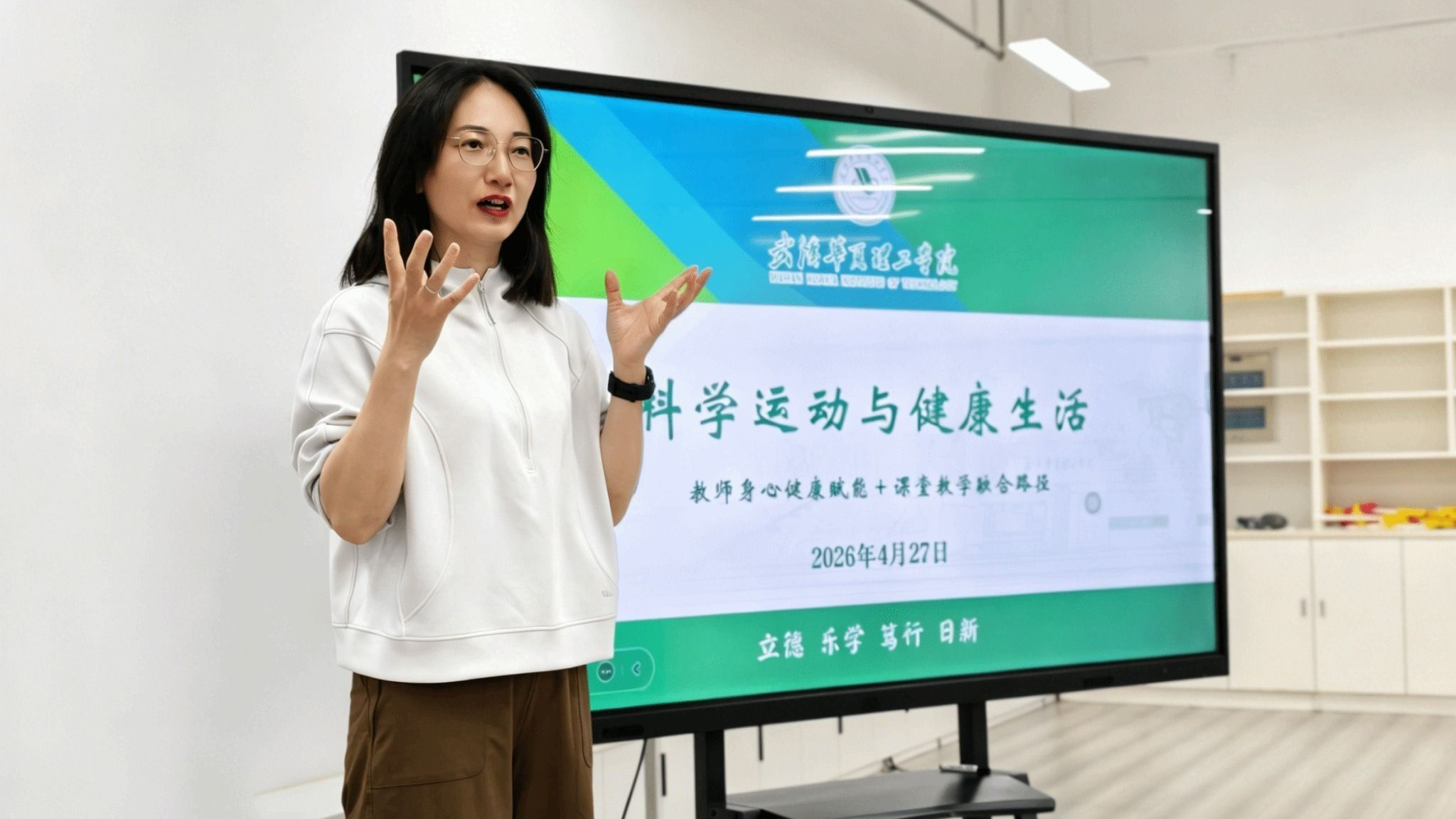 为深入贯彻健康中国2030规划纲要,创新通识健康教育和健康校园建设实施路径,2026年4月27日中午,教师发展中心联合体育学院在学校体育馆舞蹈房成功举办“科学运动与健康生活”专题培训。本次培训以 “教师身心健康赋能+课堂教学融合路径”为核心,面向全校教师普及科学运动与健康管理知识,推动健康理念融入通识教育与日常教学,助力师生身心协同发展。