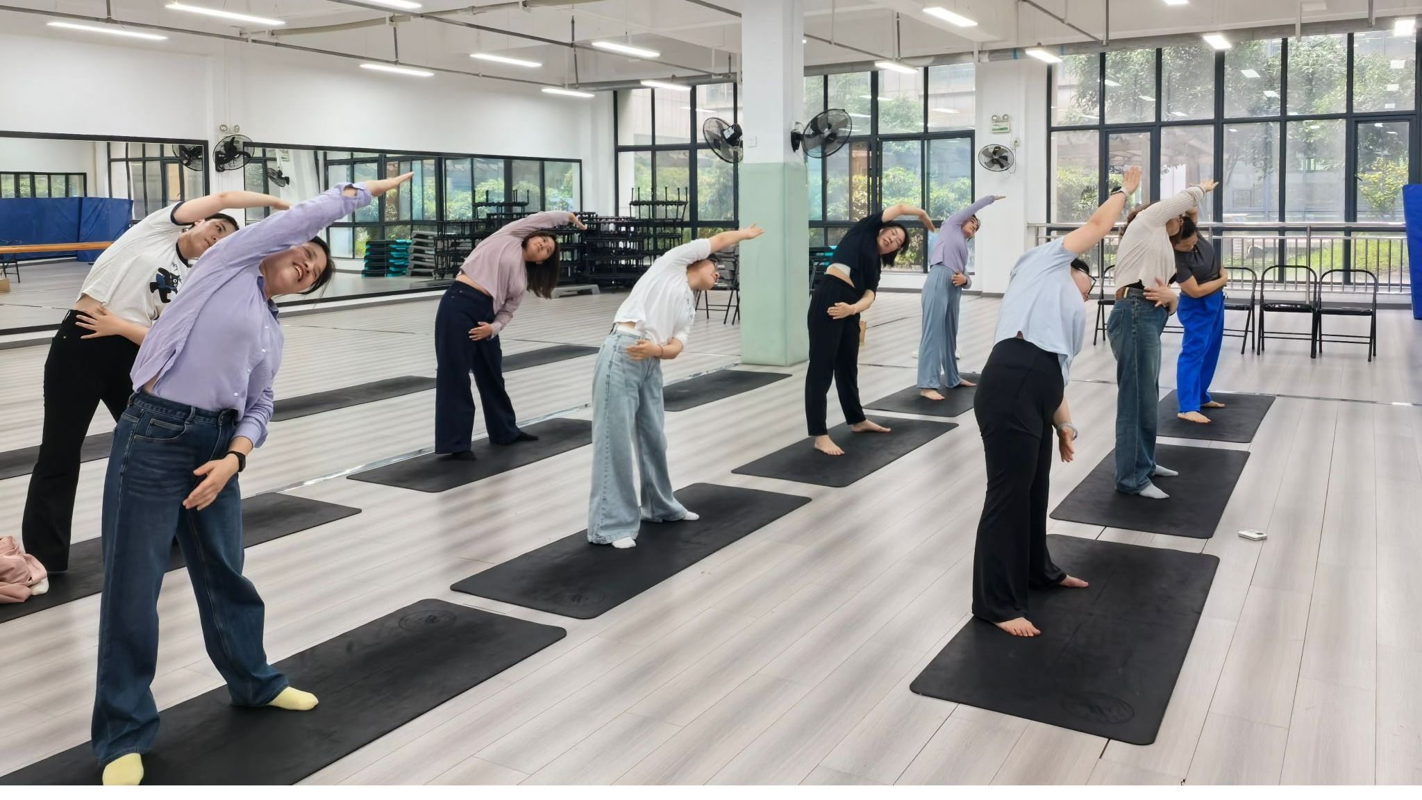体育学院彭晶老师和韩潇慧老师现场示范科学管理体重实践方案,从5—10分钟动态热身、20—30分钟高效燃脂训练,到运动后拉伸放松、瑜伽塑形与营养搭配,完整呈现“运动 + 营养 + 调理”闭环模式。