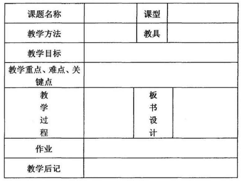 当今教学工作中最常见的一种教案形式,一般的表格形式如下: